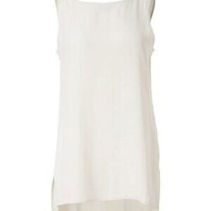 Eileen Fisher Silk Georgette Crepe Bateau Neck Sleeveless Tunic, Bone, SZ M, NWT