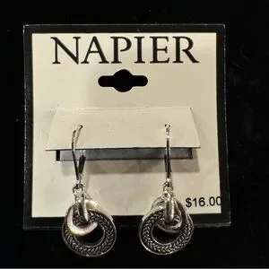 Napier Silver Tone Braided Circle Dangle Earrings New