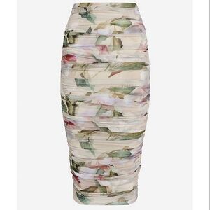 💚Express Cream Multicolored Floral Print Ruched Pencil Skirt☆