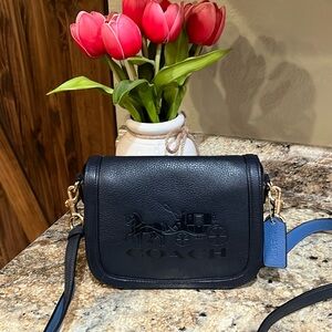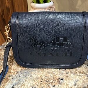 COACH EUC Saddle Leather Horse & Carriage Crossbody Midnight Blue