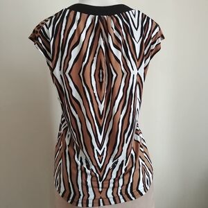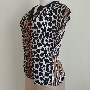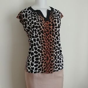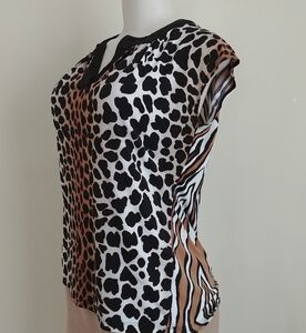 Short sleeve animal print blouse size Medium, made of 95% polyester 5% spandex. It's in very good clean condition, one of my favs. No damages.