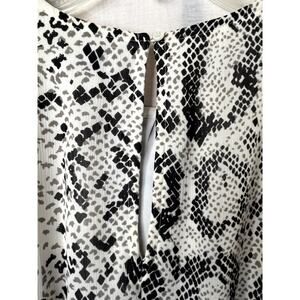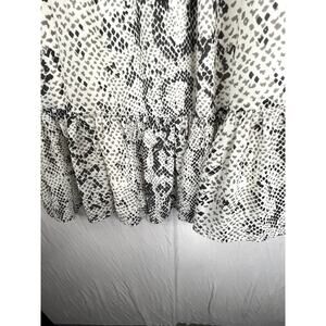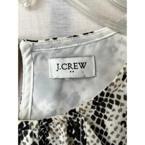 NWT J. Crew women's snake print smocked dress, size XXS. Dress has 3/4 length sheer sleeves, lining, ruffle hem, keyhole button closure in back