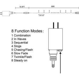 -8 Lighting Modes: This decorative string light has 8 lighting modes for you to choose: combination, in waves, sequential, slogs, chasing/flash, slow fade, twinkle/flash, and steady on. Fit different occasions and environment, directly press the button on the transformer to change the modes.