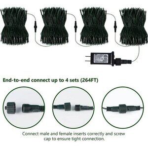 -End-to-end Connectable Lights: Each Christmas light set comes with end-to-end plug, can be connectable up to 4 sets (800 LEDs), expandable up to a longer 264ft length allow you to decorate your lighting area with the desired length. High quality UL certified products ensure the safety of you and your family.