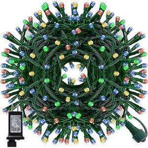 66FT Outdoor Christmas Green Wire LED Fairy Lights, 8 Lighting Modes, Multicolor