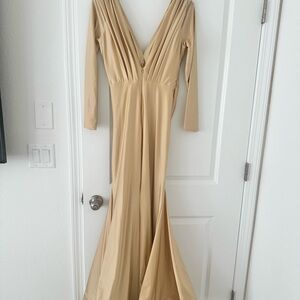Elegant long sleeve champagne satin dress size 6M