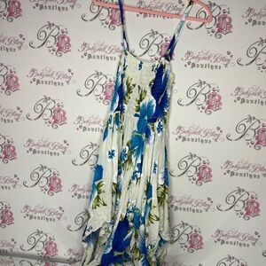 Hawaii dress floral white blue green fairy whimsical asymmetrical hem flowers