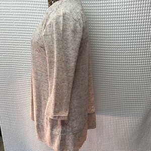 Behind The Seams 3/4 Sleeve Lightweight Cardigan. Mocha/White Heathered Color. EUC. Size Medium.