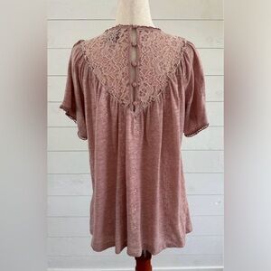 Knox Rose Pink flowy, relaxed fit top with lace embroidery and flower eyelet detail. Purchased from Target. Size: Small