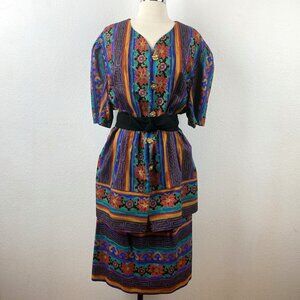 Vintage 80s Tracy Richards Colorful Two Piece Dress ~ Tunic Top and Skirt