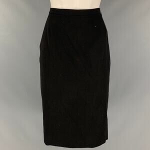 in a black woven fabric featuring a parka style, multiple utilitarian zip pockets, and button closure. Good Pre-Owned Condition. Moderate discoloration, as is.