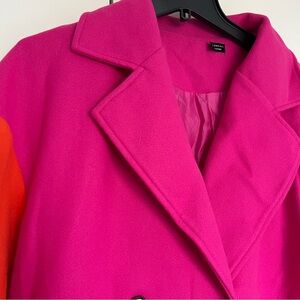 so cute! red and pink sporty pea coat. great for walking the streets or looking cute at a game.