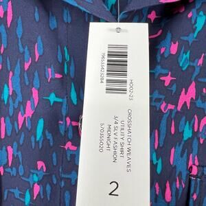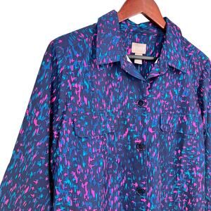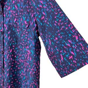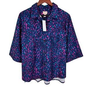 NEW NWT Chicos Sz LARGE 2 Blue Pink 3/4 Sleeve Summer Button Up Shirt Top Mature