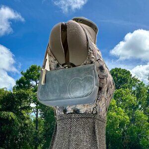 Coach Vintage Baby Blue Suede Leather Heart Stitched Demi Y2K Purse RARE 6732