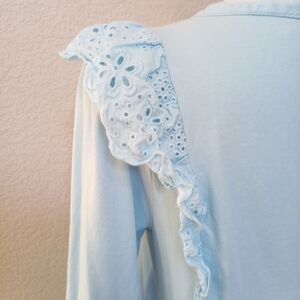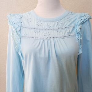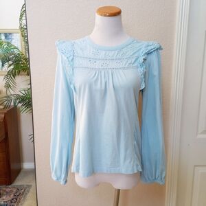J. Crew light blue eyelet and ruffle detail long sleeve top. Excellent condition.