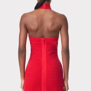 Herve Leger red mini dress with cutouts in a size XS. Originally selling for $1,800