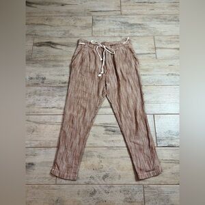 FREE PEOPLE LIGHT AT SUNRISE CROP PANTS SLIM LEG DRAWSTRING HIGH WAIST BOHO SZ 6 Q479
