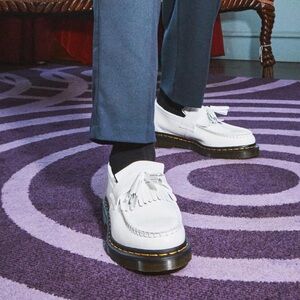 Our subcultural favourite Adrian tassel loafer has been a staple in the DM’s line-up for decades. Built from our classic Smooth leather with a double tassel and kiltie fringe. The loafer is marked with instantly recognisable DM’s signatures: a grooved two-tone outsole and distinctive yellow welt stitching.