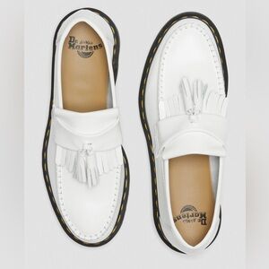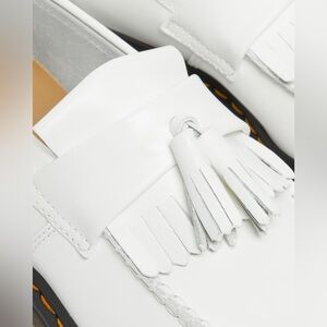 DR MARTENS ADRIAN YELLOW STITCH LEATHER TASSEL LOAFERS WHITE SMOOTH LEATHER