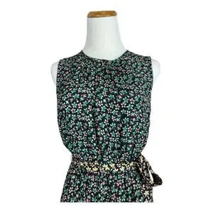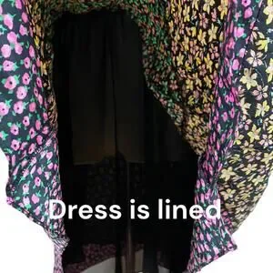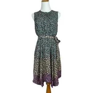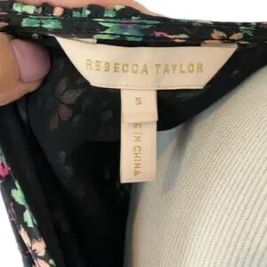 Rebecca Taylor 100% Silk Black with Floral Print Sleeveless Louisa Dress Small