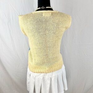 beautiful cream, lavender, and baby blue sweatervest top. has a few loose yarns at the bottom, but honestly it gives it a kind of unique distressed look so it doesn't bother me.