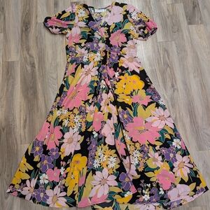 This is an eco-friendly bag made from cork with a fun, colorful design on the top flap. It has backpack straps and two zippered pouches, with an additional zipper inside the largest pouch. The flap has a magnetic button clasp. This came from a local seller in Spain!