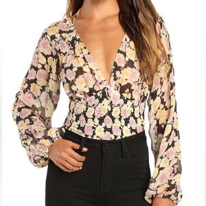 Adorable Lulu’s Romantic Impression Black Floral Smocked Tie Back Cropped Top