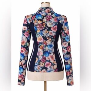 Brand new with tags JOHNNY WAS ACTIVE “Fall Dance” Fitted Athletic Jacket in a sold-out floral print. This luxe performance piece blends high-end fashion with function, featuring a vibrant multicolor botanical design set against a sleek, sculpting silhouette.