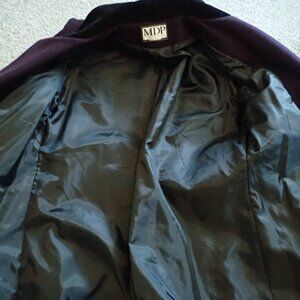 Gorgeous Eggplant Color with velvet trim collar and buttons.