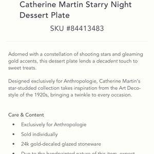 ONE Anthropologie Starry Night Dessert Plate NWT...
