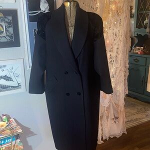 Black corseted dress with a full skirt. The waist is made of a material with a small percentage of spandex so it cinches the waist and comfortable. The bottom of the skirt has netting to make it a swing effect. The sleeves are 3/4 with a cuff and buttons. The collar is a high and framing pattern that flatters the neck.