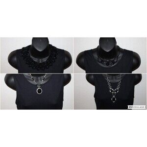 Lot of 4 Vintage Necklaces Bib Black Faceted Beads Cookie Lee Napier Pendant