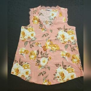 Harhay pink sleeveless floral blouse. Size medium