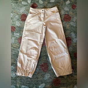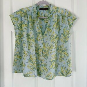 Anthropologie Porridge Navy with White Horses, Peasant Style V-Neck Top, Size Medium, Cotton/Polyester, Pit to pit (shown) is a touch over 20”, hip side to side is 21”. Back is Navy Jersey, LIKE NEW, NO
