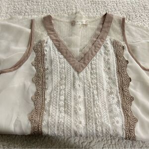 Alterβd State Embroidered Lace Sz Small Sleeveless Blouse Cream & Tan