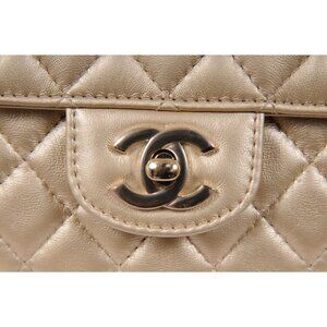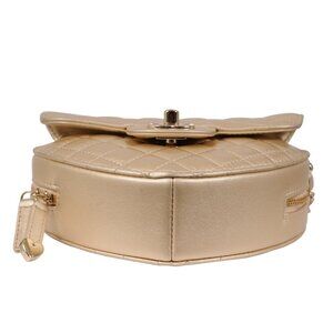 Chanel Womens Gold Metallic Lambskin Quilted CC Logo Large Heart Crossbody Bag