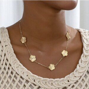 New 14k Solid Gold Necklace Multi-layered, Round Turquoise & Flowery Pendant
