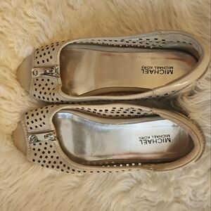 Never worn! Michael Kors Leather Slip On Shoes Flats White Gold Size 10.