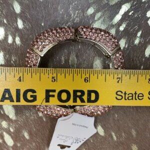 Elevate your look with our Peach Rose Gold Square Fashion Bracelet. This stunning piece features a gold tone stretchy band with square rhinestones that add a touch of glamour to any outfit. Perfect for formal events, special occasions, or a night out on the town, this bracelet is a must-have accessory for your jewelry collection. Add a touch of elegance and sparkle to your ensemble with this beautiful bracelet. [See all photos for measurements.] New, never worn.