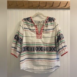 Lands’ End Colorblock V neck dress. Size 16. Textured 98% cotton 2% spandex. Short sleeves. Scoop bottom hem. Dark navy and bright blue. Excellent pre owned condition. No rips or stains. Ships from a non smoking home.