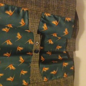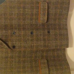 Grey plaid double breasted vest w/brown suede trim. SZ 50R