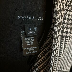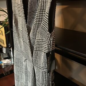 Black and white all over houndstooth jumpsuit. Has pockets. Zip back closure. Stretchy. Missing belt