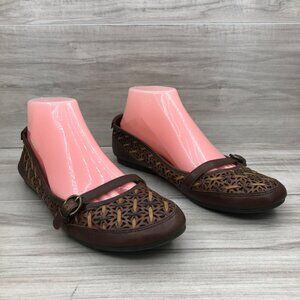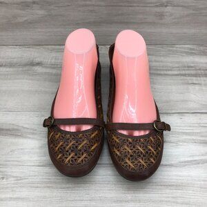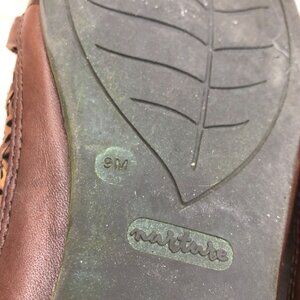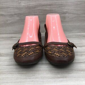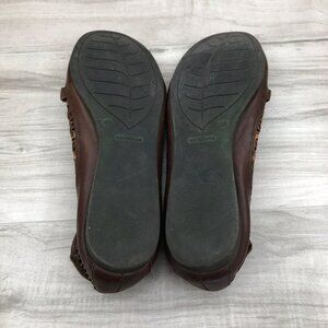 Nurture Brown Leather Slip On Buckle Strap Flat Sandals Women's Size 9M