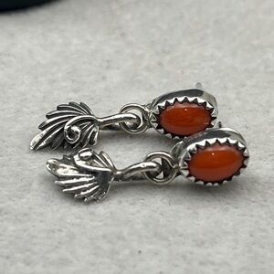 Unmarked, tests sterling. Lovely detailed beautiful coral winged mermaid, they have some scratching.