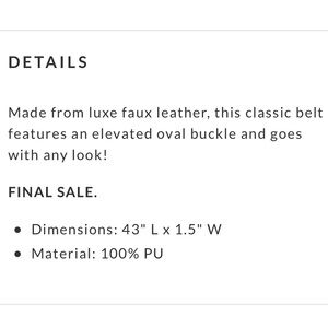 New in bag, Vici Beauden Oval Buckle Belt in brown/gold. One size. Dimensions: 43" L × 1.5" W