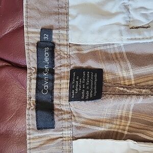 Calvin Klein, Men's, Shorts, Plaid, Green/Beige Sz. 32