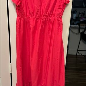 Abercrombie & Fitch v-neck midi dress with ruffle sleeves. Color: Coral