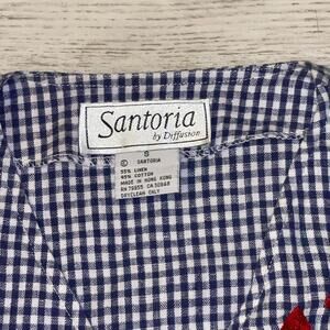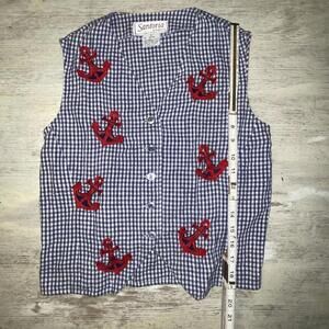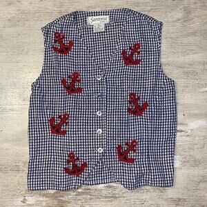 EUC Vintage 90s Santoria Blue Gingham Anchor Embroidered Cotton Linen Vest