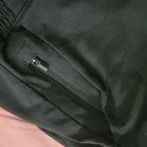 Worn twice, size 6, camo ( black, gray, like dark navy) print Jogger style pants straight leg relaxed fit, two front hand pockets two back zipper pockets elastic backed waistband side stretch panel made from sustainable fabric wrinkle resistant.