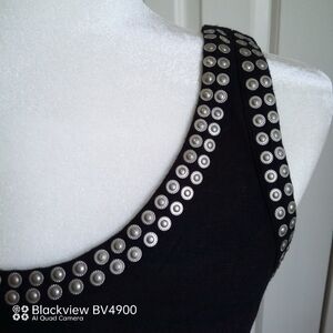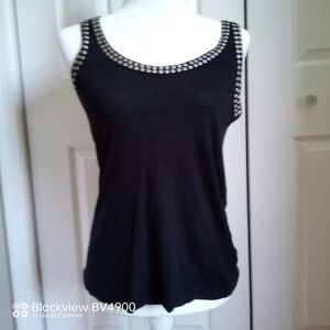 H&M Women's Round Neck Sleeveless Blouse - Beaded Neckline - Black Size Small Pre-owned - Length 17" - Pit to Pit 15 1/2"